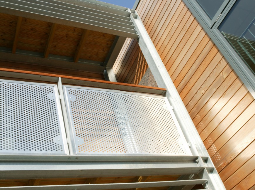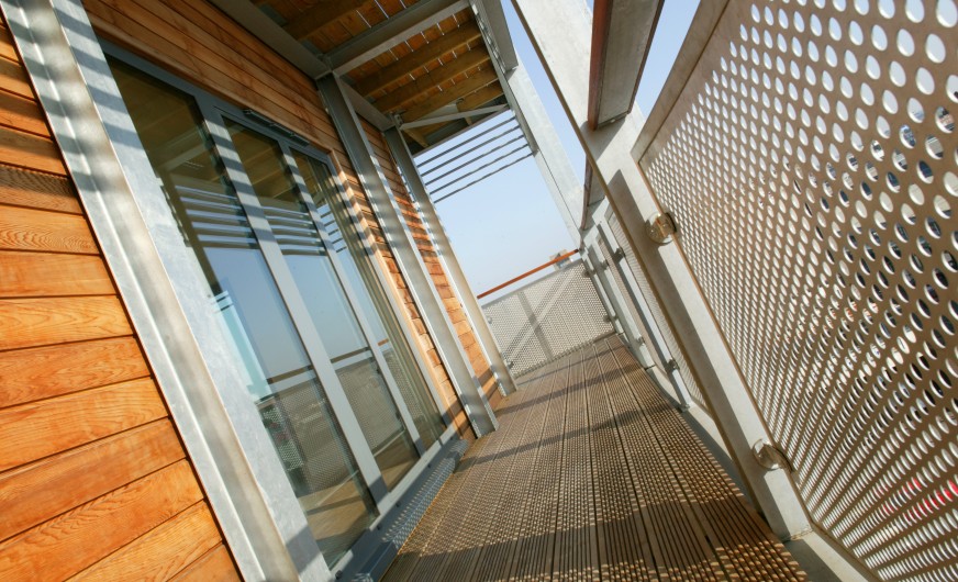 The unique design solution is characterised by the layered timber and glass facade and exposed steel structure to provide 80 contemporary loft style apartments with a raised central courtyard, parking beneath and commercial units which along with the reception area open out to the Arcadian Centre itself.