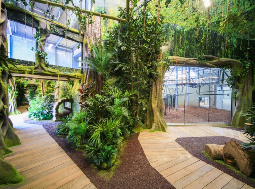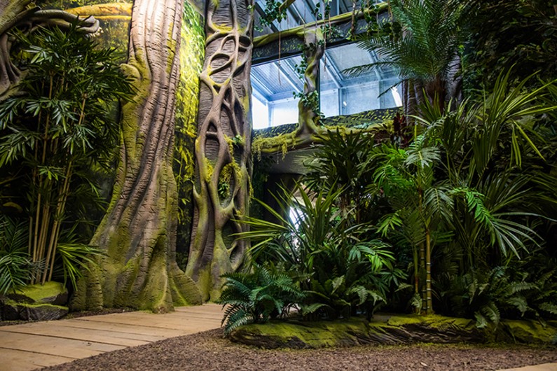 The themed landscaped interior gives visitors an immersive educational jungle experience.