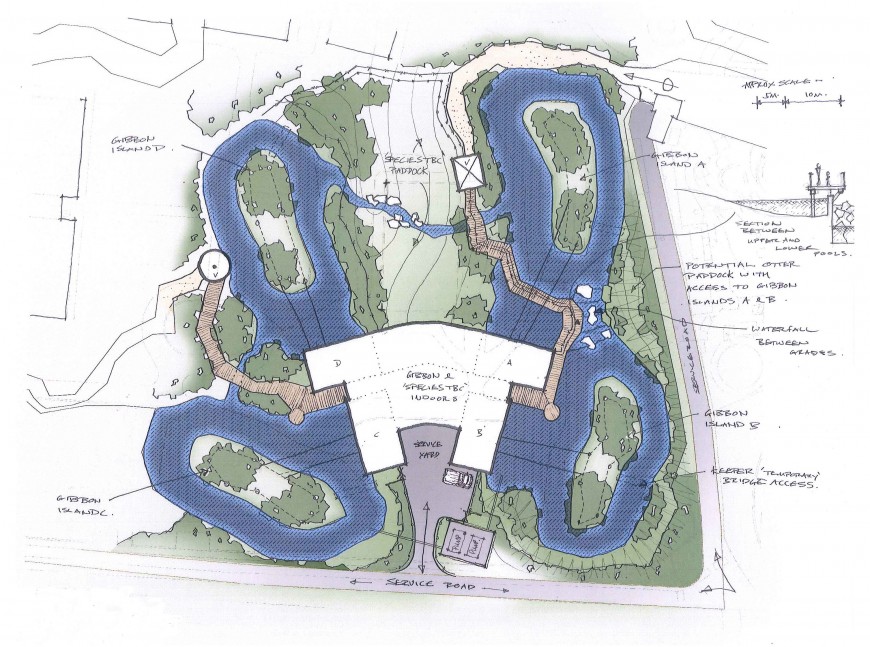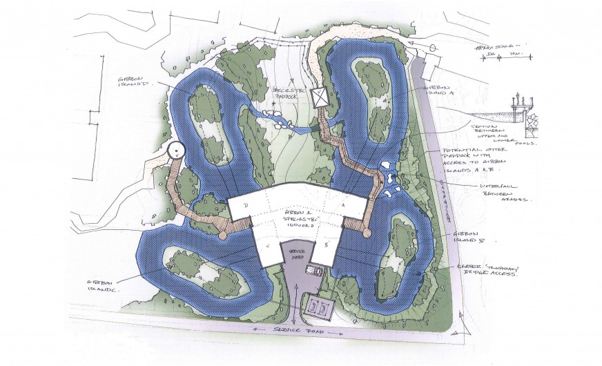 The 2 storey building with 4 moated islands replicates the gibbons’ natural habitat in rainforests and our design is informed with specialist knowledge and experience of primate experts working at the zoo.